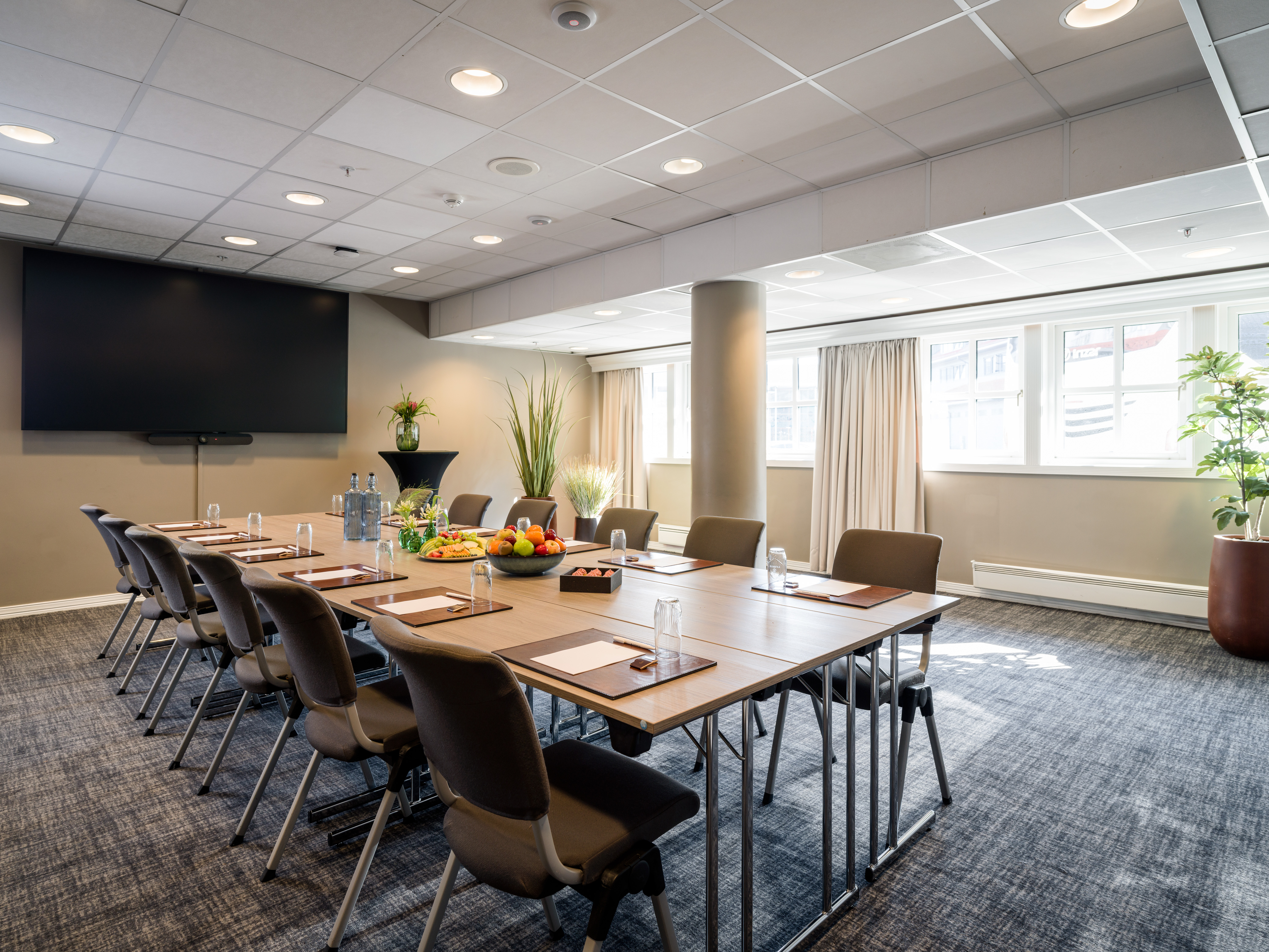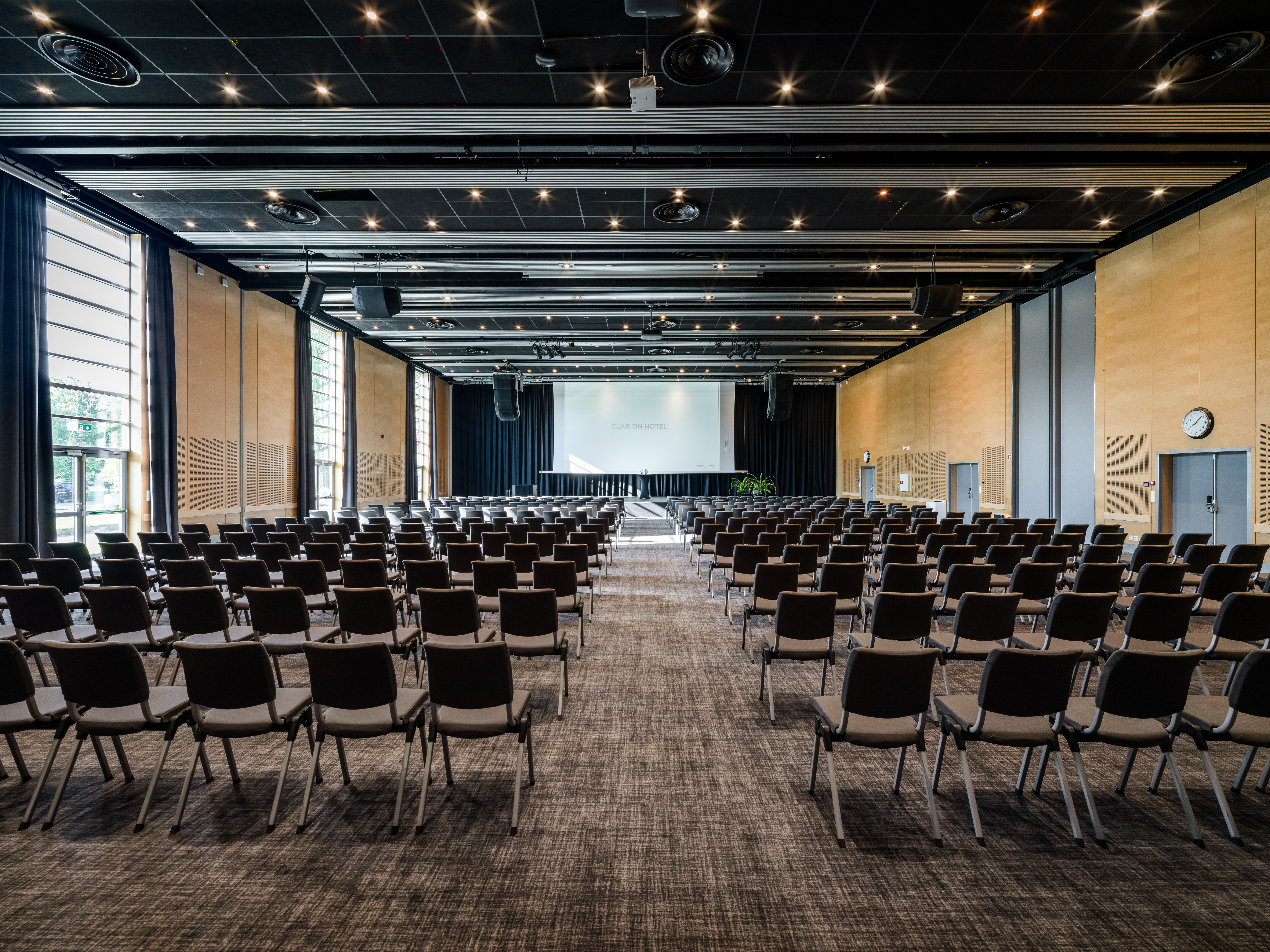 Skoleoppsett: 336 Bankett: 288 Kino: 480 Dagslys: Ja
