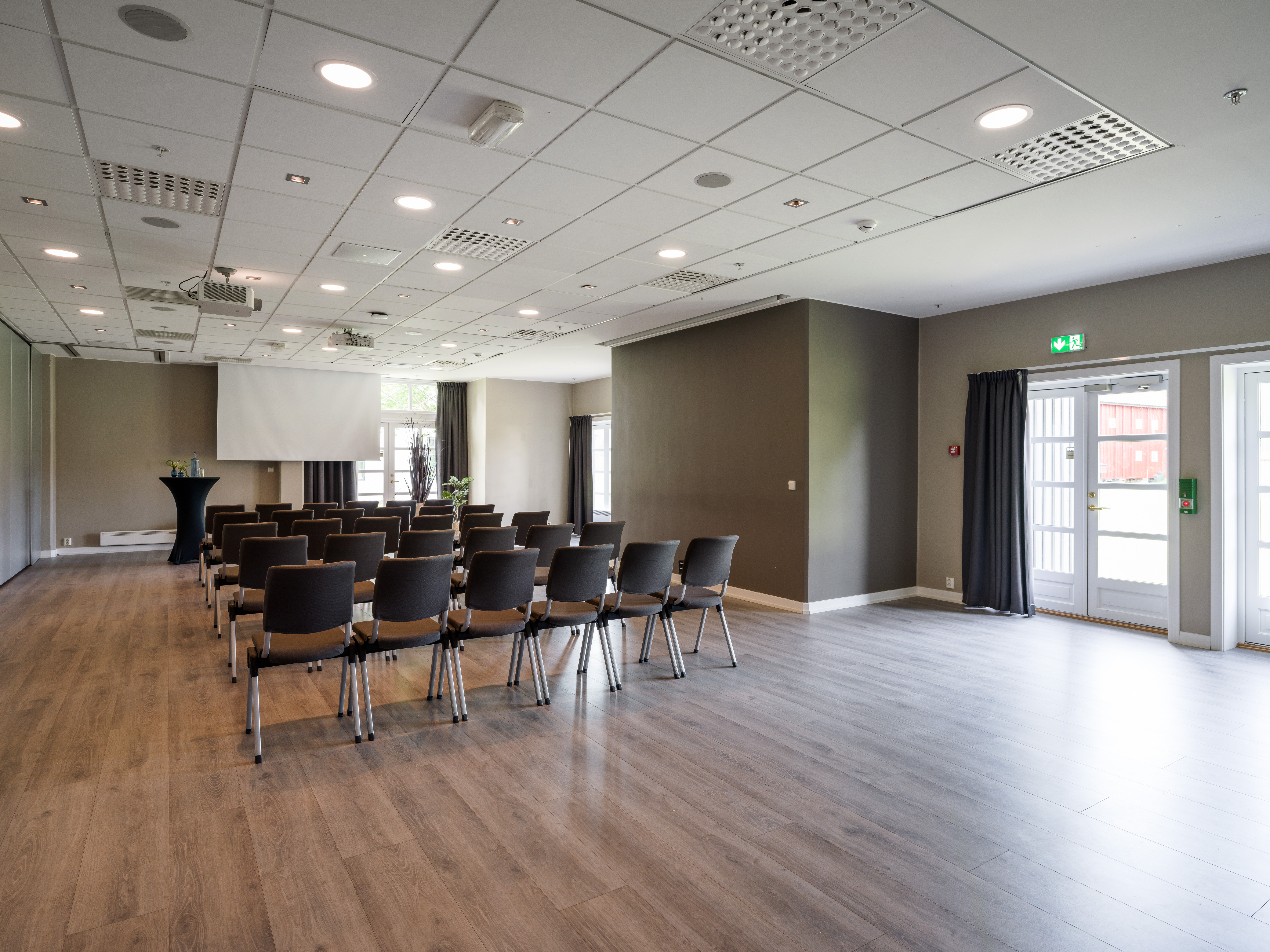 Skoleoppsett: 500 Bankett: 420 Kino: 700 Etasje: 1 Dagslys: Ja